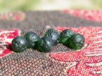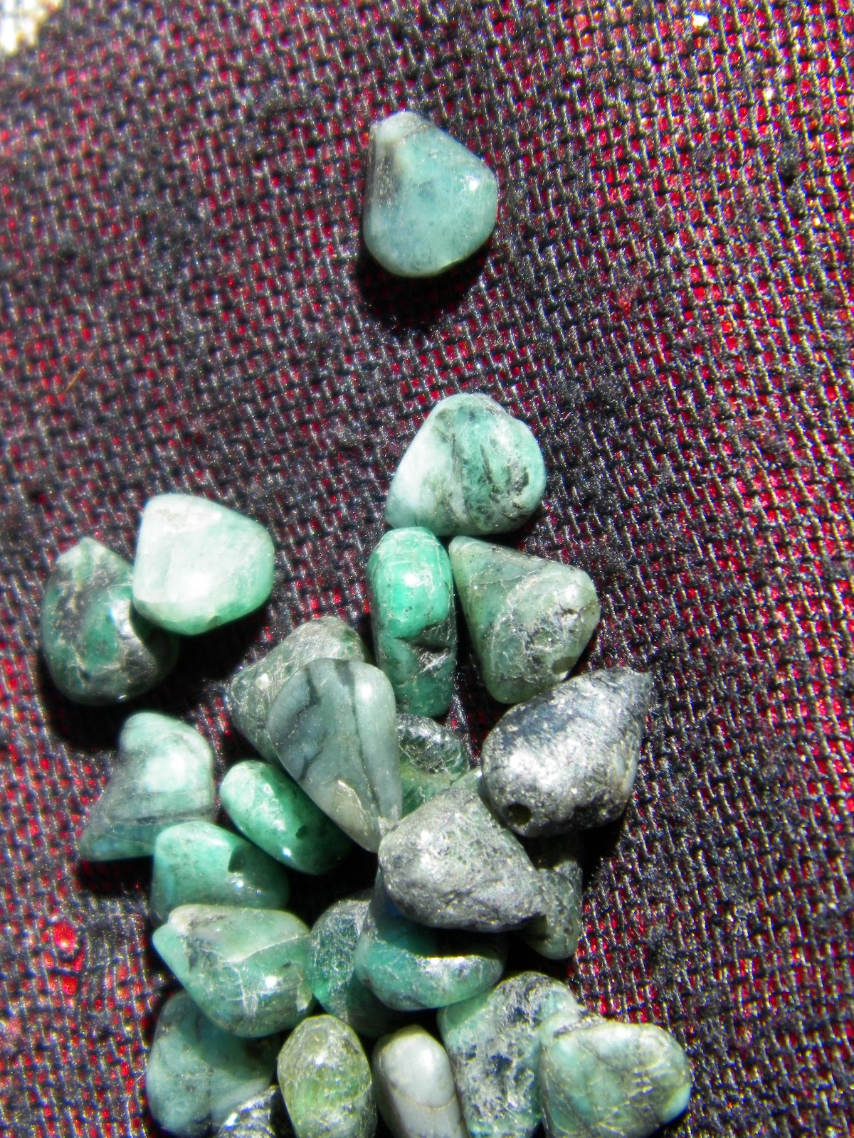 Since my client was given a choice between emeralds and glass, and chose emeralds, I’m posting photos of what you can use. The original uses rather tubular pressed glass, but I’ve made similar necklaces using sandcast glass, and in this case, emeralds. The great thing about looking at the geological makeup of the area (and consequently, the Empire’s trading partners) is that it’s reflected in jewellery of the area. Again, the glass I got on sale, something like $0.99 a strand at Hobby Lobby. The emerald was a gift, but Fire Mountain sells rough cut emerald beads for relatively inexpensively (though, they will totally be, more than likely, the most expensive part of your project, especially since you need three beads for it).