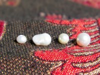 One of the things I’d like to note with materials is that you can fake any of this with cheaper materials. I prefer using freshwater pearls (and in the photo below, you can see that I had my choice between type of pearls. From the left – small freshwater button pearl, larger freshwater potato-shaped pearl, small glass pearl, and lastly, a much larger Swarovski pearl), however, use what you have on hand. If you like Swarovski pearls, or are making this project for a singular event, don’t spend a lot of money on something that you’re only going to wear once or twice. That being said, I can find, locally, in my midwestern American city, 16″ strands of freshwater pearls anywhere from $2-$4 in the sizes that I need.