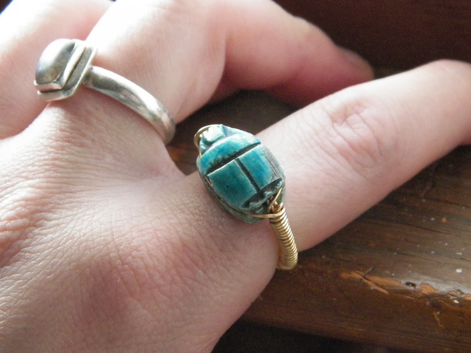 I was given a carved bead to work with about a year ago, and I wasn’t sure what to really do with it until today, when I saw the scarab ring on Pinterest and decided to experiment.