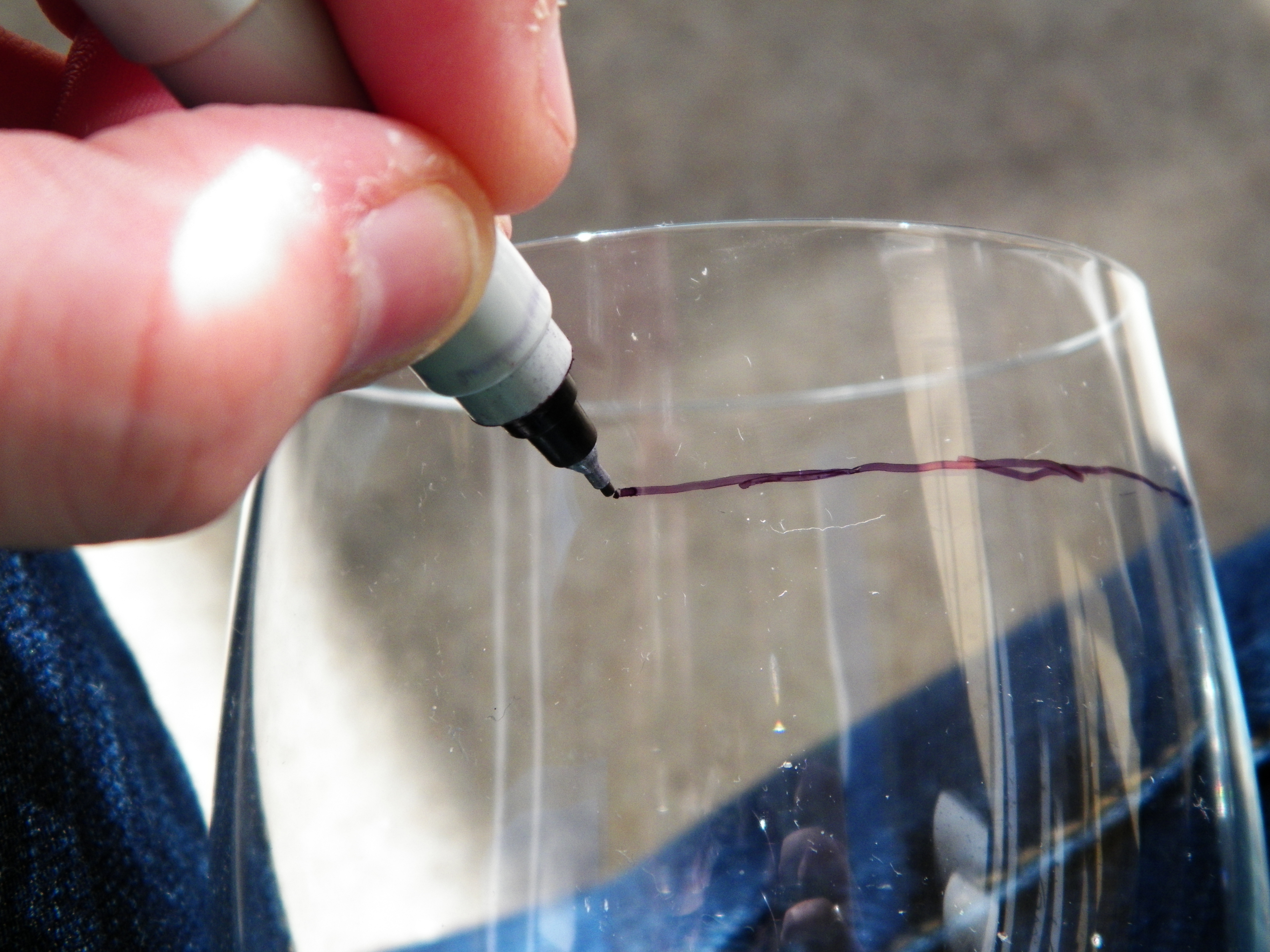draw, tape art of your motif on the inside of the glass, and trace with the marker on the outside. The downside of this method is that the design can become warped. When you do your layouts, remember that what you draw out will look frosted over, and while you can do hatching, it will look darker or different.
