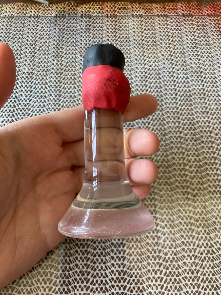A muller or a flat-bottomed piece of frosted glass. This is the implement that will be used to mix your paint with the binder. The muller I have was a gift, but came from this store on Amazon and I have been really pleased with it, but before that, I used a piece of a desk trophy that my friend Alan cut and frosted for me. Glass fermentation weights or secondhand goblet with a completely flat bottom can also work, but the glass will need to be roughed up (silicon carbide or sandpaper will do the trick!) so that the pigment can be evenly distributed. The nice thing about the traditional style muller is that if you need to cushion it with a bit of Sugru, you can – mine was cushioned this way to help me grip the handle.