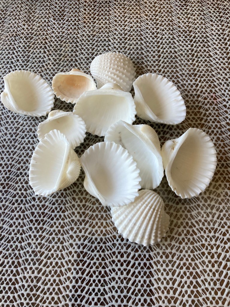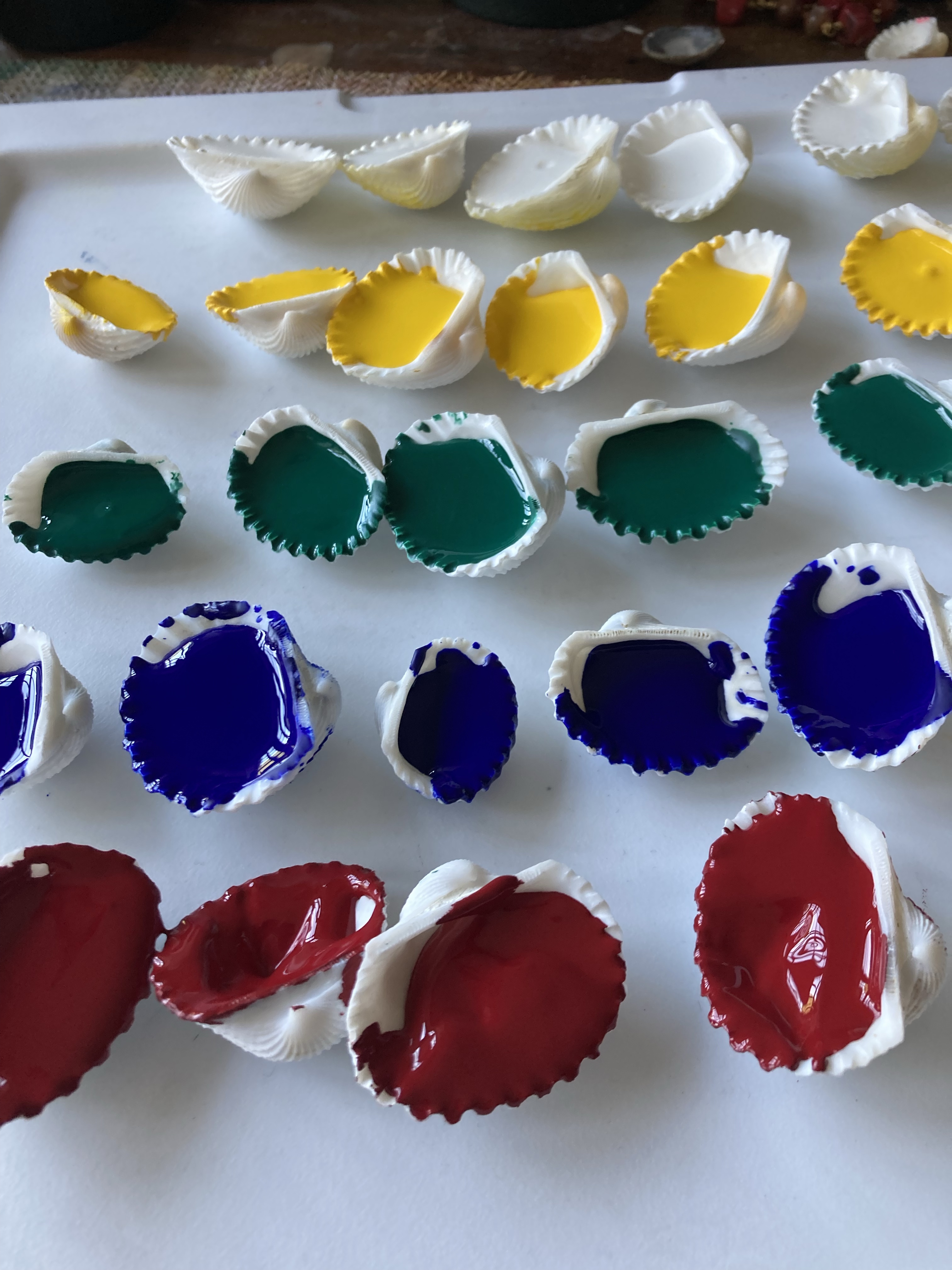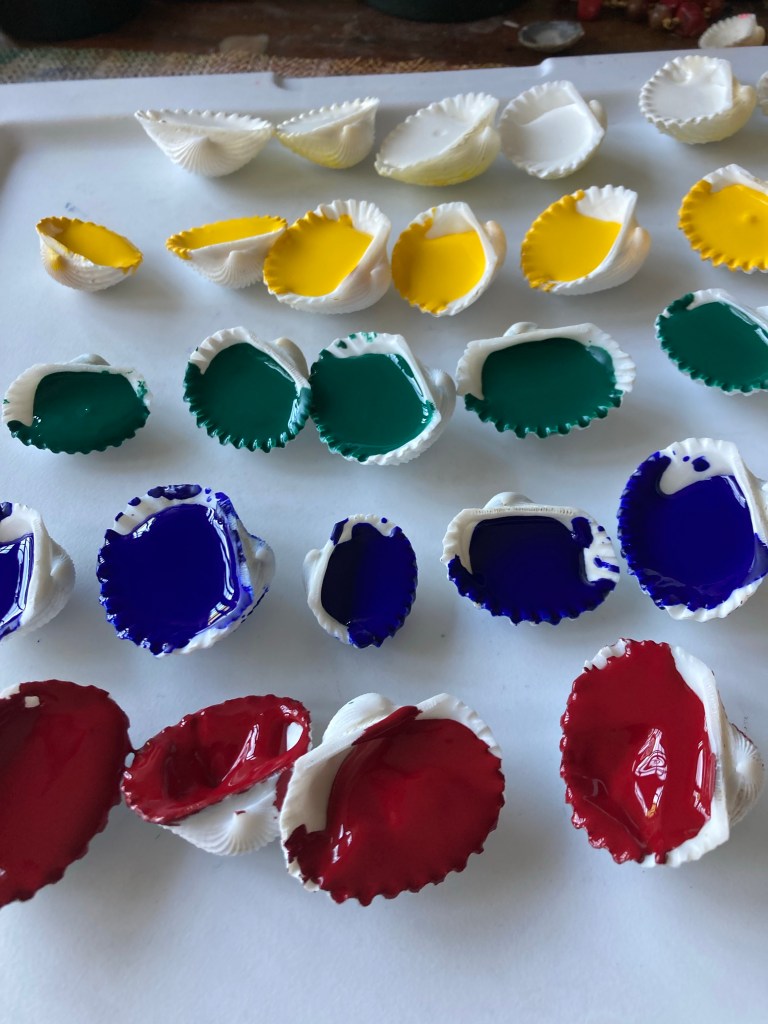 Shells or (palette) wells. Either works, but you’ll need to store your paint in something. I like white ark shells, but literally any sort of cup-shaped shell will work. (don’t use anything that you couldn’t use as a scoop, as it will not hold your paint at all.) It’s taken me about five months to go through a 2 pound bag of shells, but if you’re doing paint for yourself, it’s okay to ask for shells from friends. Just make sure you clean them out really well to make sure all of the sand and other beach bits are out of the shell.