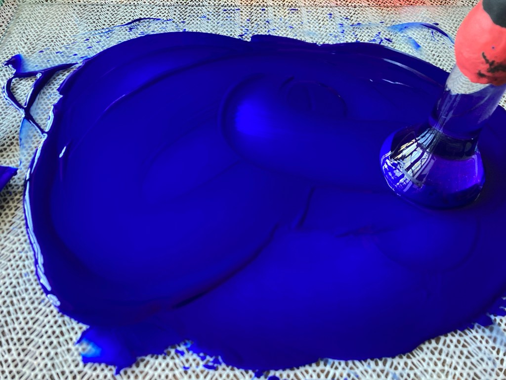 Glass plate, piece of glazed tile, or an old marble cutting board. I use a glass palette, roughed up with a bit of sandpaper to make sure that the pigment particles suspend in the binder. You can absolutely use a piece of tile (my very first time making a tiny bit of paint was using glazed ceramic tile), or a marble cutting board (which is similar to the porphyry slab Cennini cites to use when mixing paint). The key is to make sure there are no big gouges in the slab, especially if you purchase the cutting board second hand, and that the only purpose for this slab is making paint.