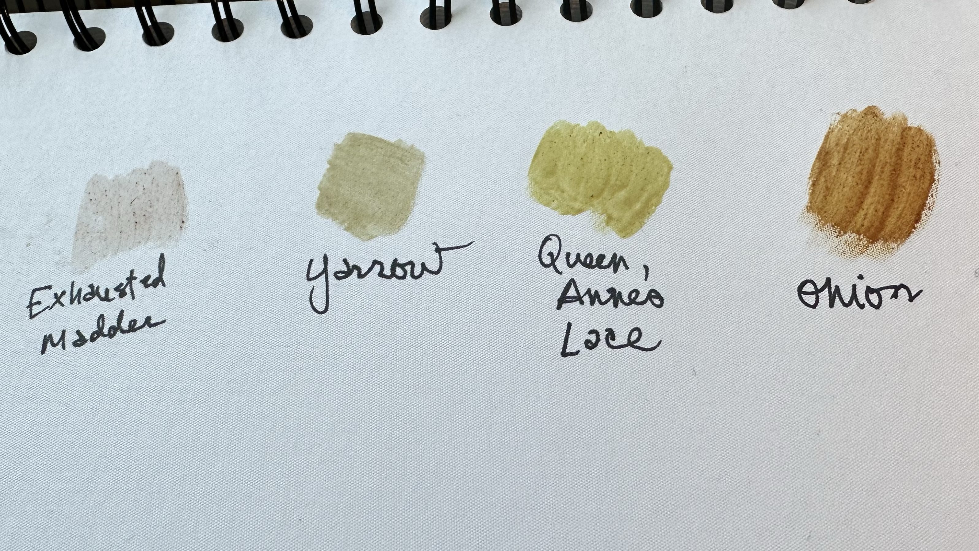 One of those people is my friend Lucia, who is a dyer and will be running Knowne World Colour, a virtual symposium dedicated to all aspects of pigments and dyeing (yes, I’m working on a class for it already!) Lucia is a dyer primarily, and brought me some lake pigments that she had made from the leftover and exhausted dye baths from her work. I got a total of four pigments: exhausted madder, yarrow, Queen Anne’s Lace, and onion skins.