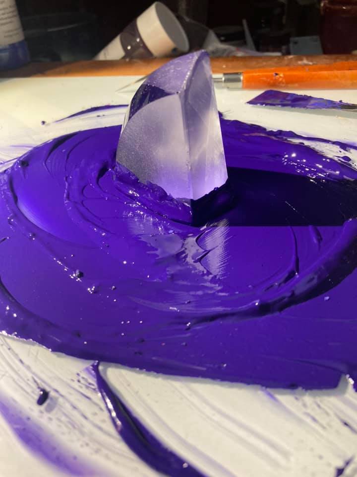 Therefore, I’ve been making a lot of purples and greens mixed on the slab (oranges typically were made from minium [red lead] and massicot [also made from lead] or realgar [arsenic sulfide], which I tend to avoid due to toxicity. There are other methods to get orangey reds by using cadmiums, which are still toxic but less so than lead and arsenic). Tyrian purple is beautiful, but time-consuming and as a result is extremely expensive (and therefore out of my budget at $150 USD for 10 grams). What’s an artist to do but to try to find the best way to get a purple, especially when purple is one of the kingdom colours?