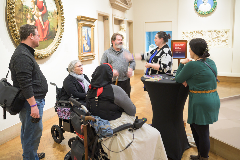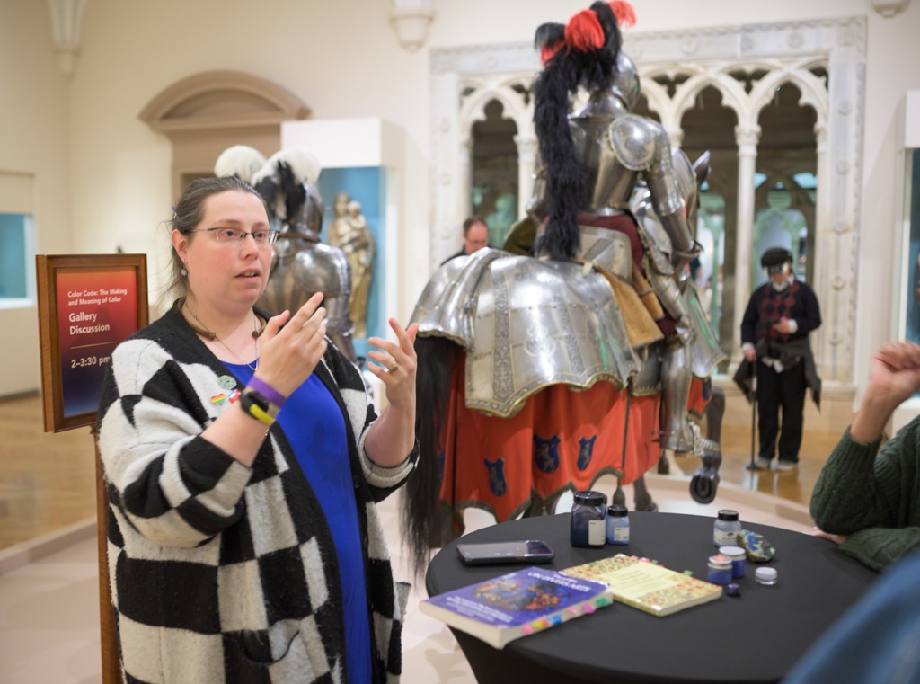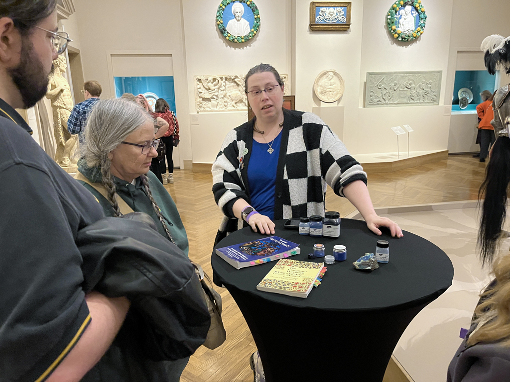 So, my programme at the Nelson-Atkins went phenomenally. I got to meet Dr. Khandekhar (and even got lunch with him and some of the other collaborators), and I got to geek out about the colour blue for a good hour and a half in the galleries. My beloved father-in-law even got photos of me presenting my work, and it was lovely having SCA friends, work friends, and my family there to support my very geeky hobby. I am eternally grateful for the opportunity to talk about something I’ve been working through for five years (has it really been five years? More? Really?!) and see people get similarly excited about it.